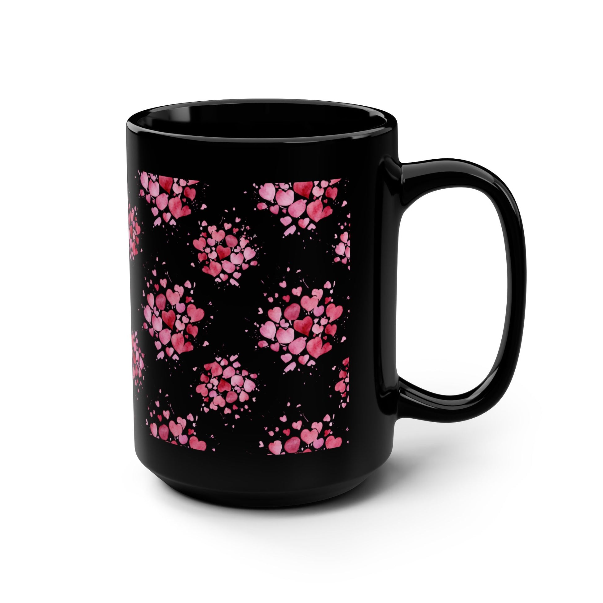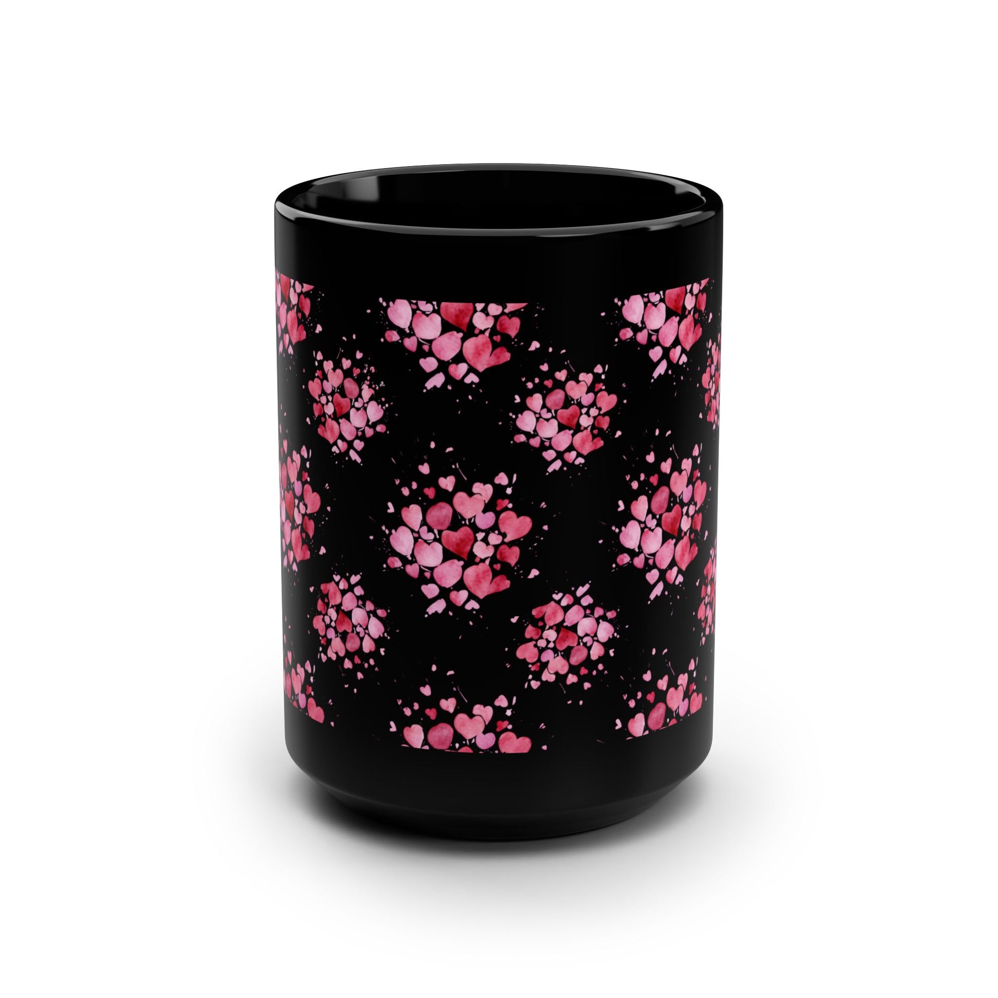15oz Black Mug — Pink Heart Cluster Pattern -Score 85