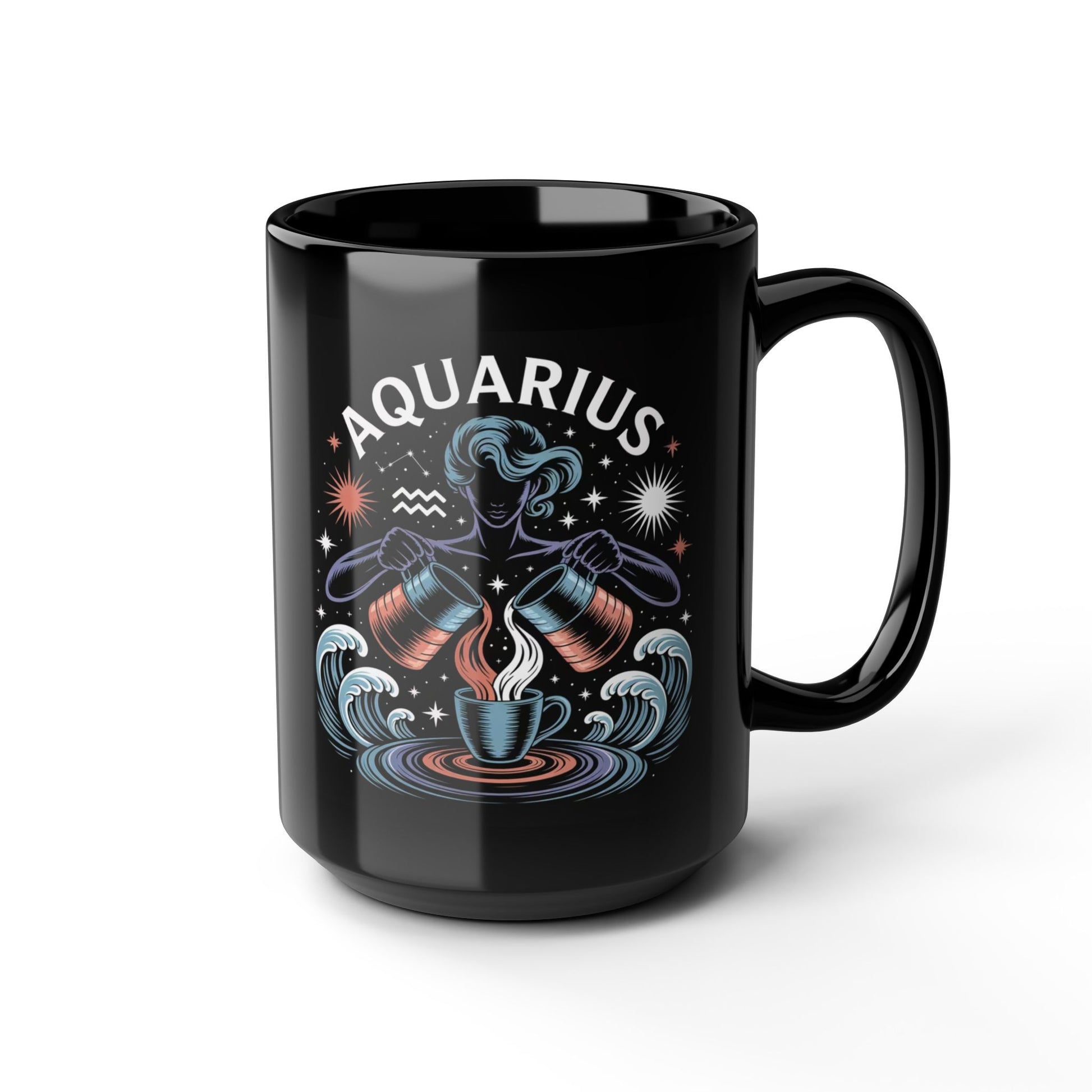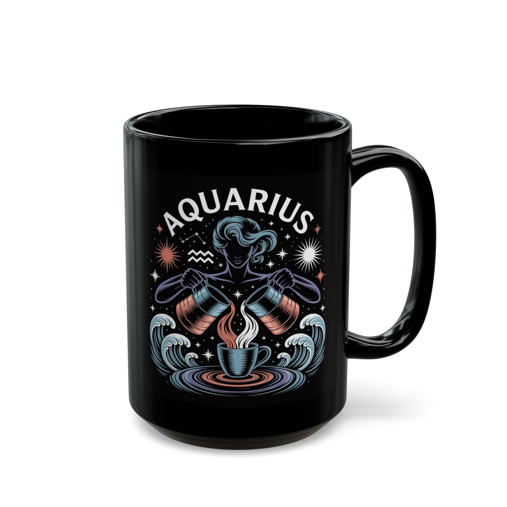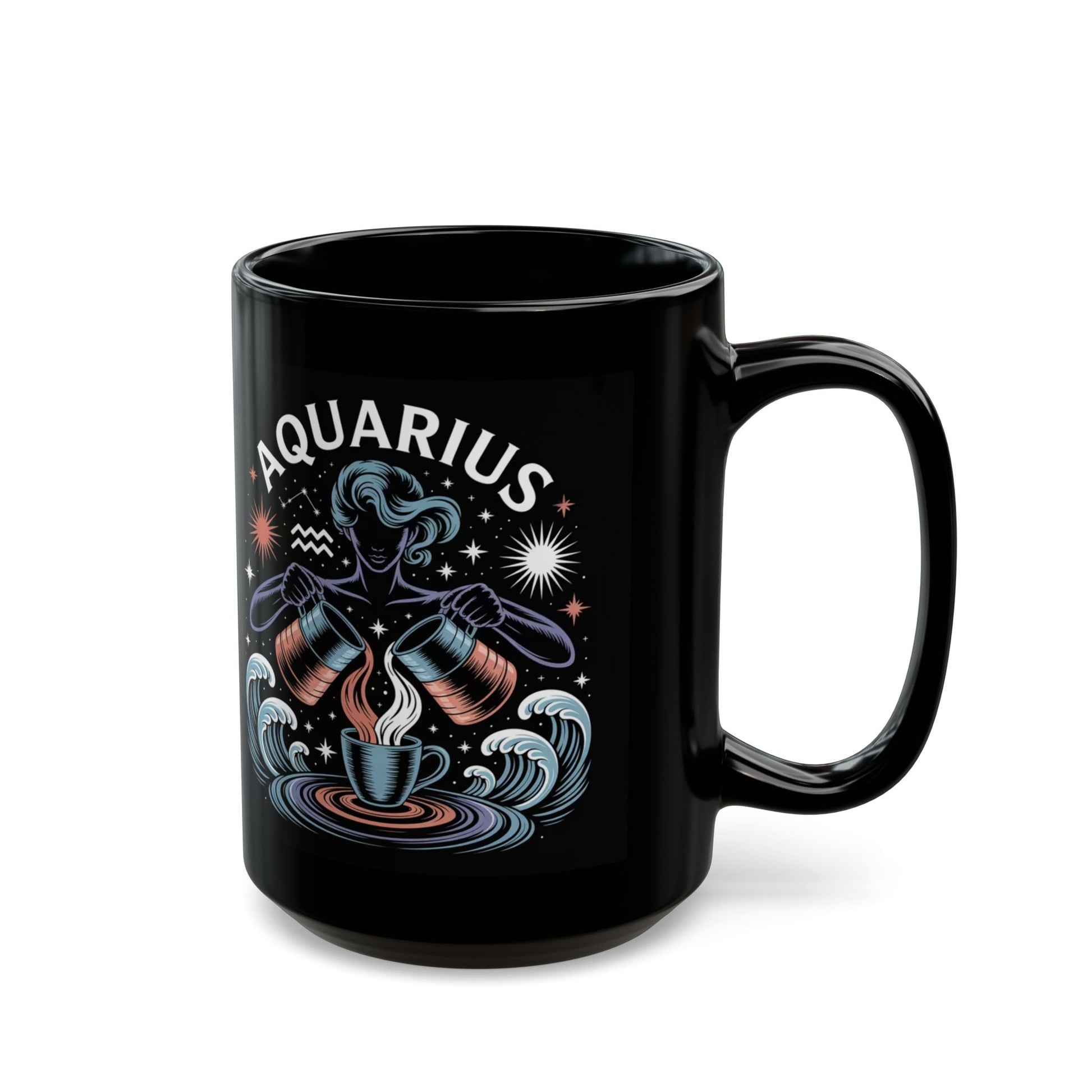 Elevate your coffee or tea ritual with this exquisite black mug, perfect for both cozy mornings and vibrant evenings. Designed for those who appreciate style and individuality, this mug is great for home, office, or as a thoughtful gift. Its glossy finish and vibrant artistry add a chic touch to your drinkware collection. Tailored for adults, this mug makes an excellent gift for birthdays, holidays, or zodiac-themed celebrations, particularly for those born under the sign of Aquarius. Indulge in a moment of relaxation while enjoying your favorite beverage, letting this mug inspire creativity and reflection in your daily routine.