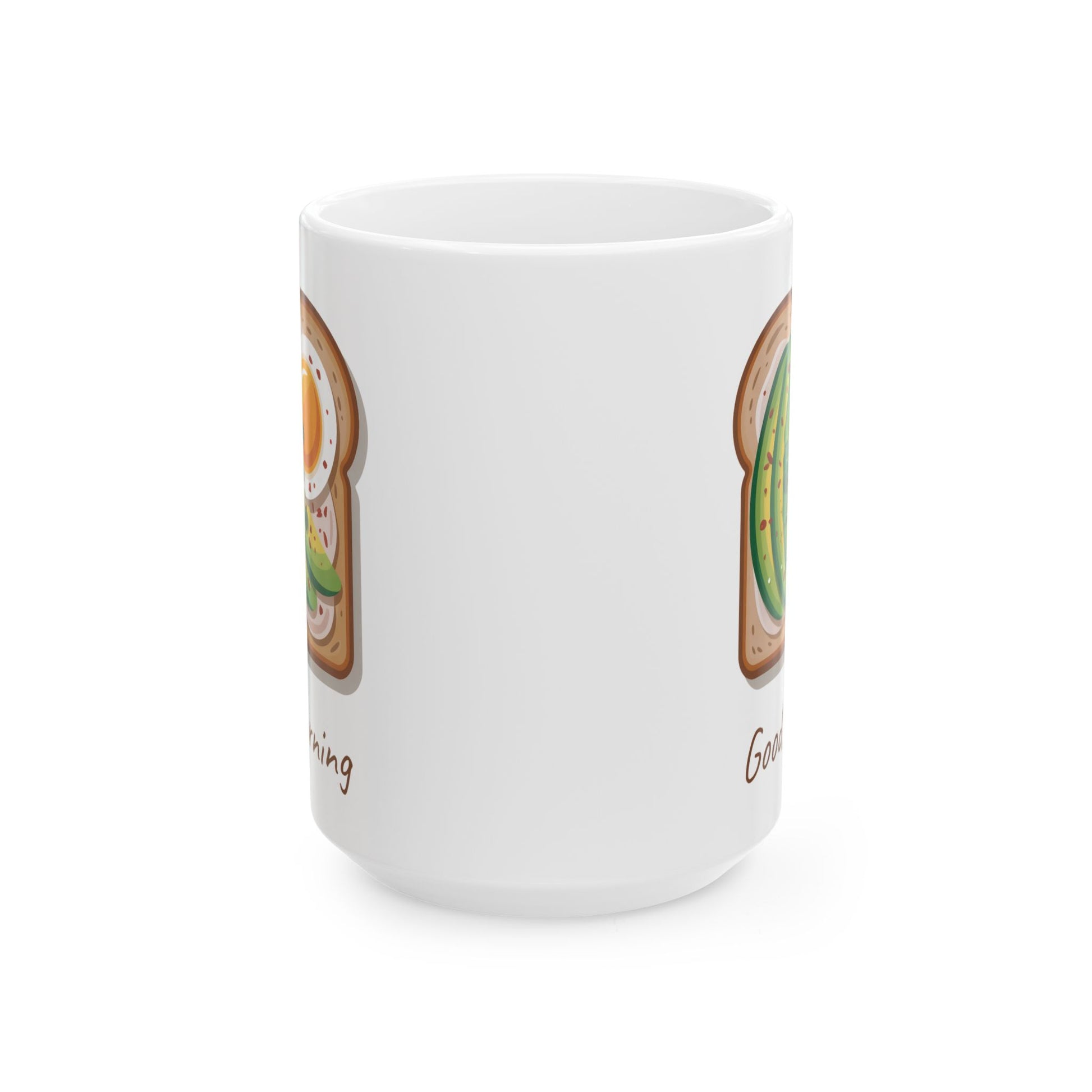 Avocado & Toast Ceramic Mug — Cute 'Good Morning' Breakfast Coffee Cup (15oz)
