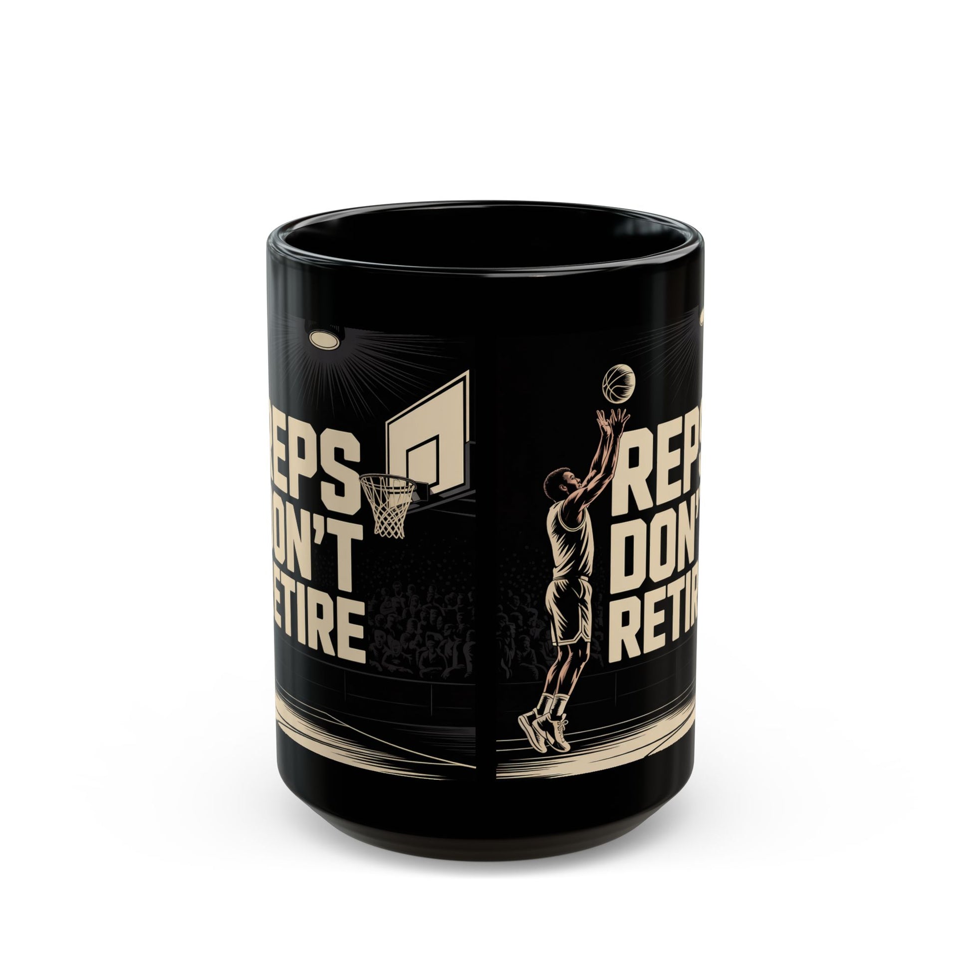 Basketball 'Reps Don't Retire' Black Mug -Male — Motivational Sports Coffee Cup (15oz)