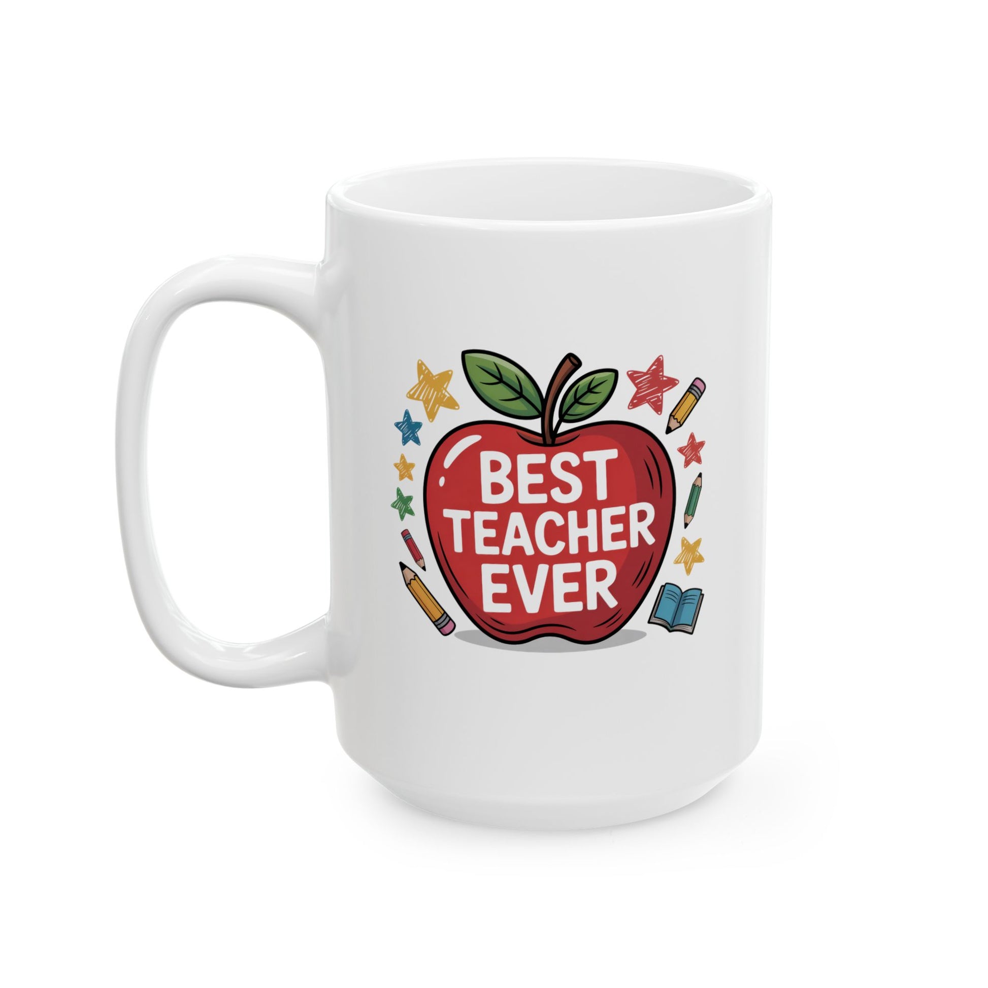 Best Teacher Ever Apple Coffee Mug 15 oz – Teacher Appreciation Gift Mug by Lair Gadgets
