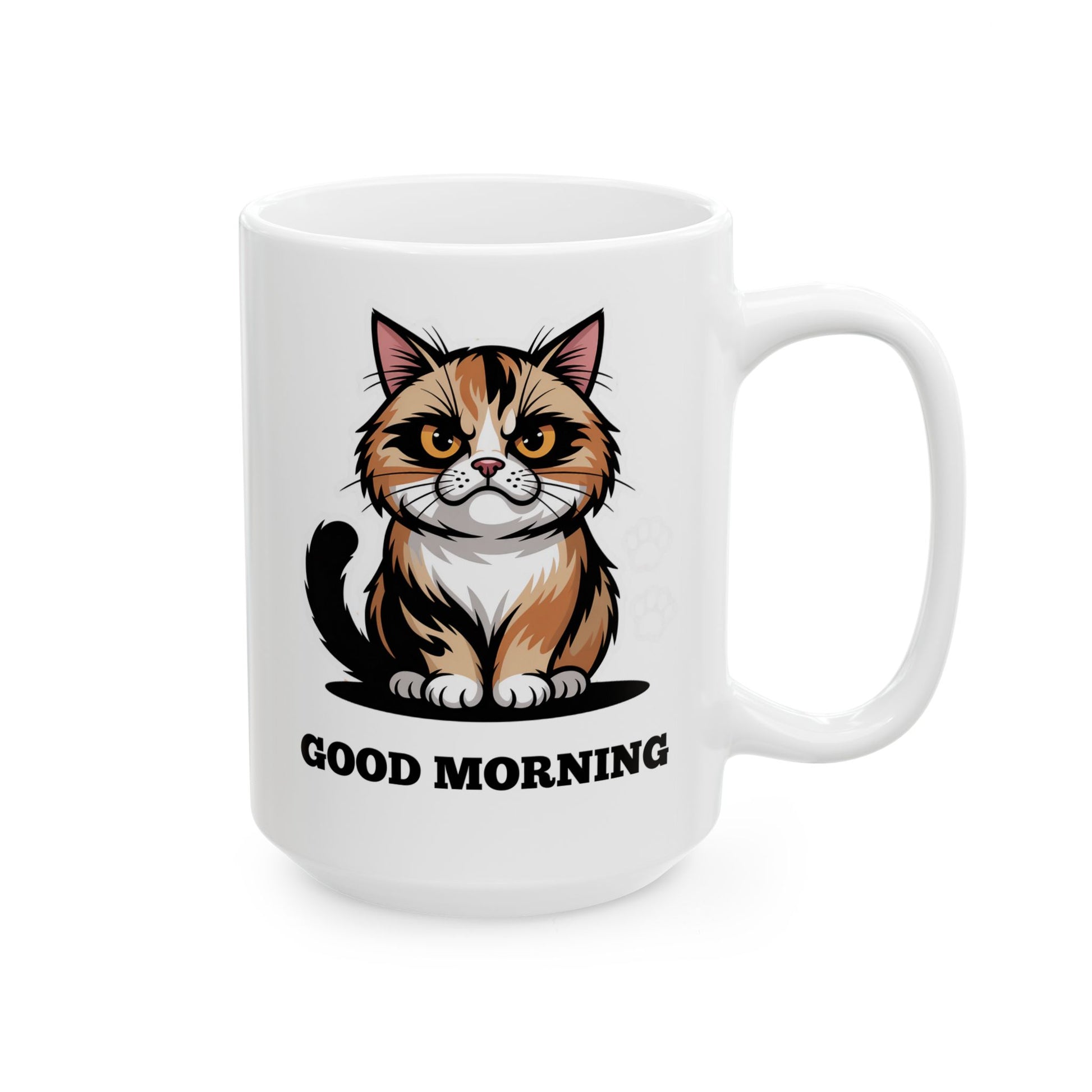 Funny Cat Coffee Mug – Serious Cat Mug for Morning Coffee and Cat Owners – “GOOD MORNING” Design by Lair Gadgets