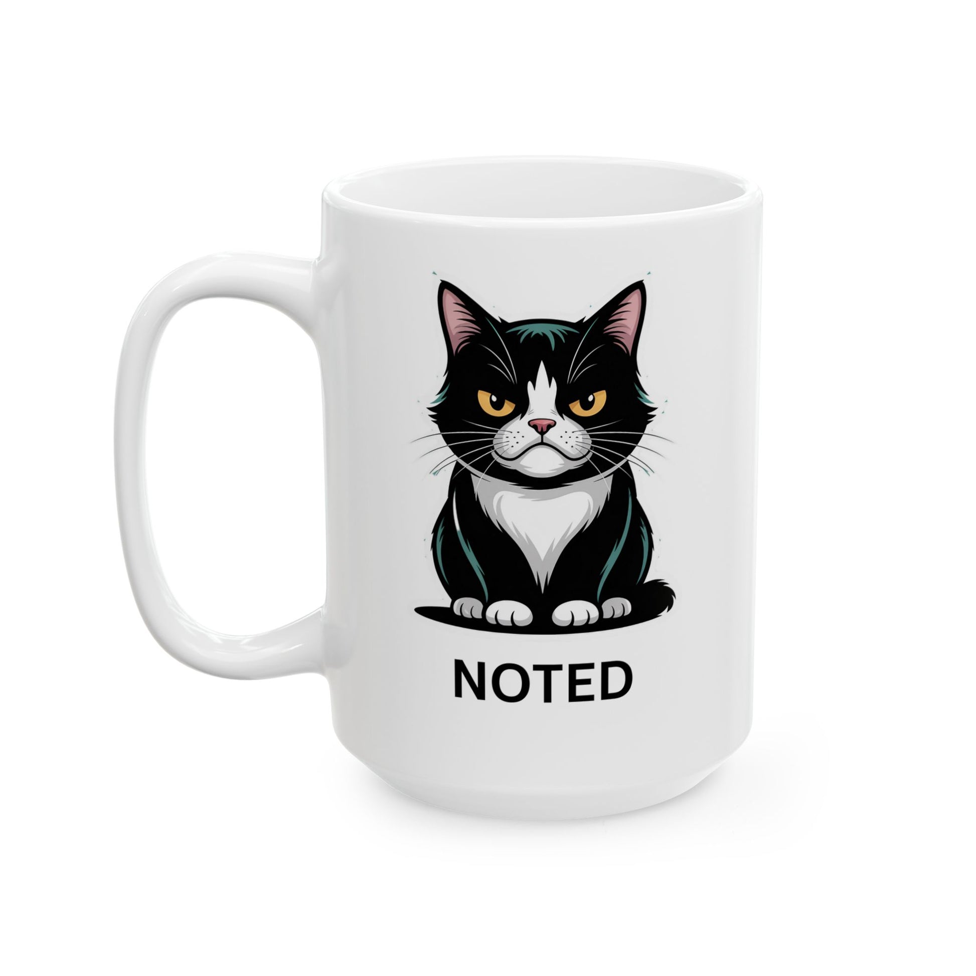 Funny Office Cat Coffee Mug – Minimalist Work Desk Mug for Office & Home – “Noted” Design