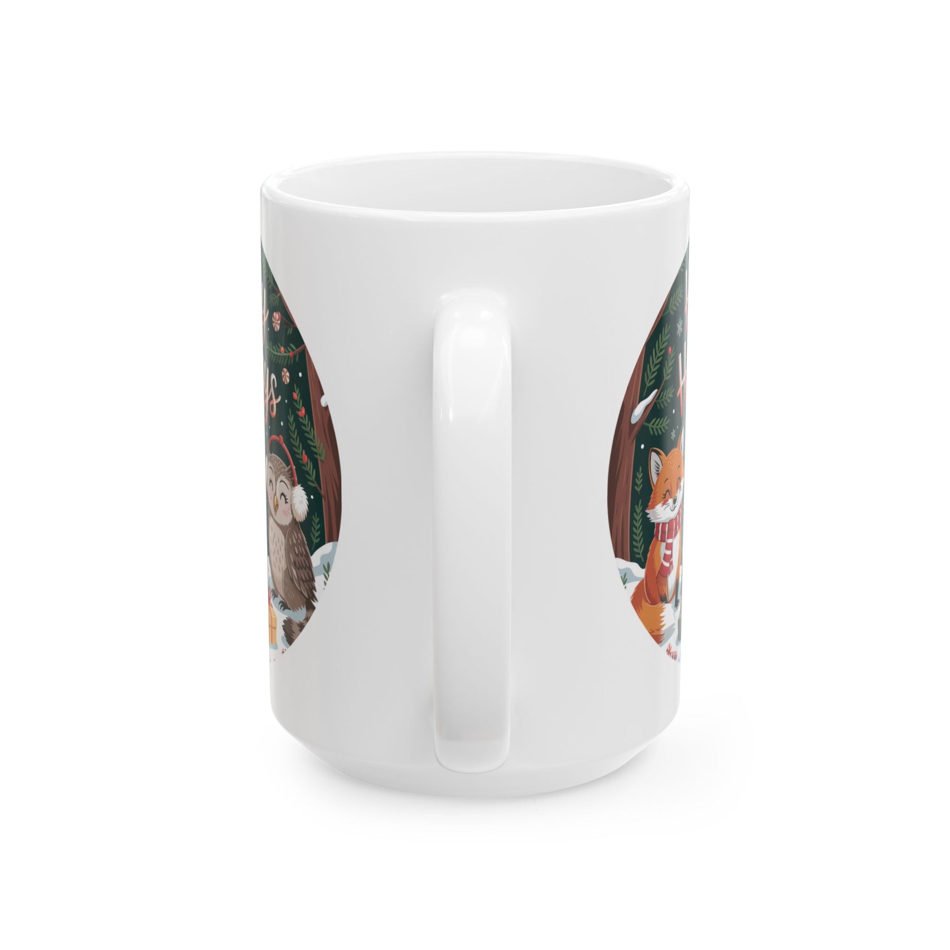 Happy Holidays Forest Friends Mug by Lair Gadgets – 15 oz White Ceramic Coffee Cup with Cozy Animal Christmas Design