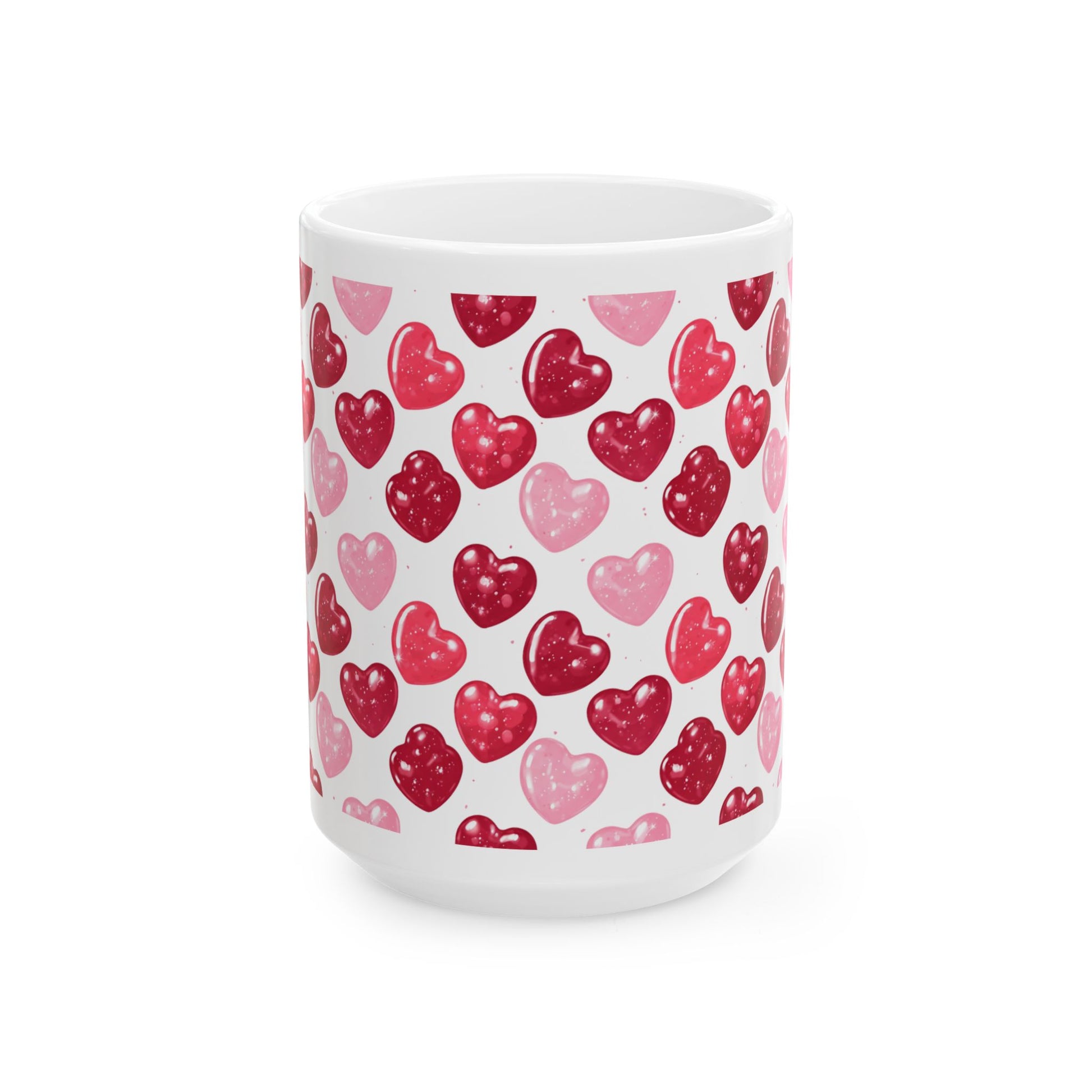 Heart Pattern Ceramic Mug – Pink & Red (15oz)- Score 84