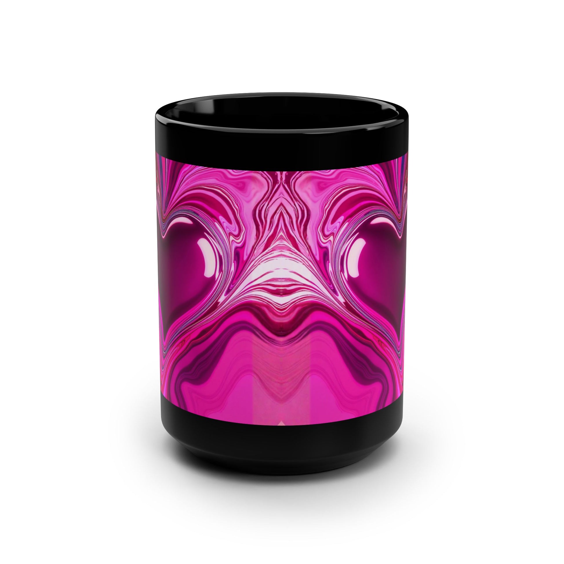 Heart Swirl Black Mug — 15oz Pink Abstract Love Score 87