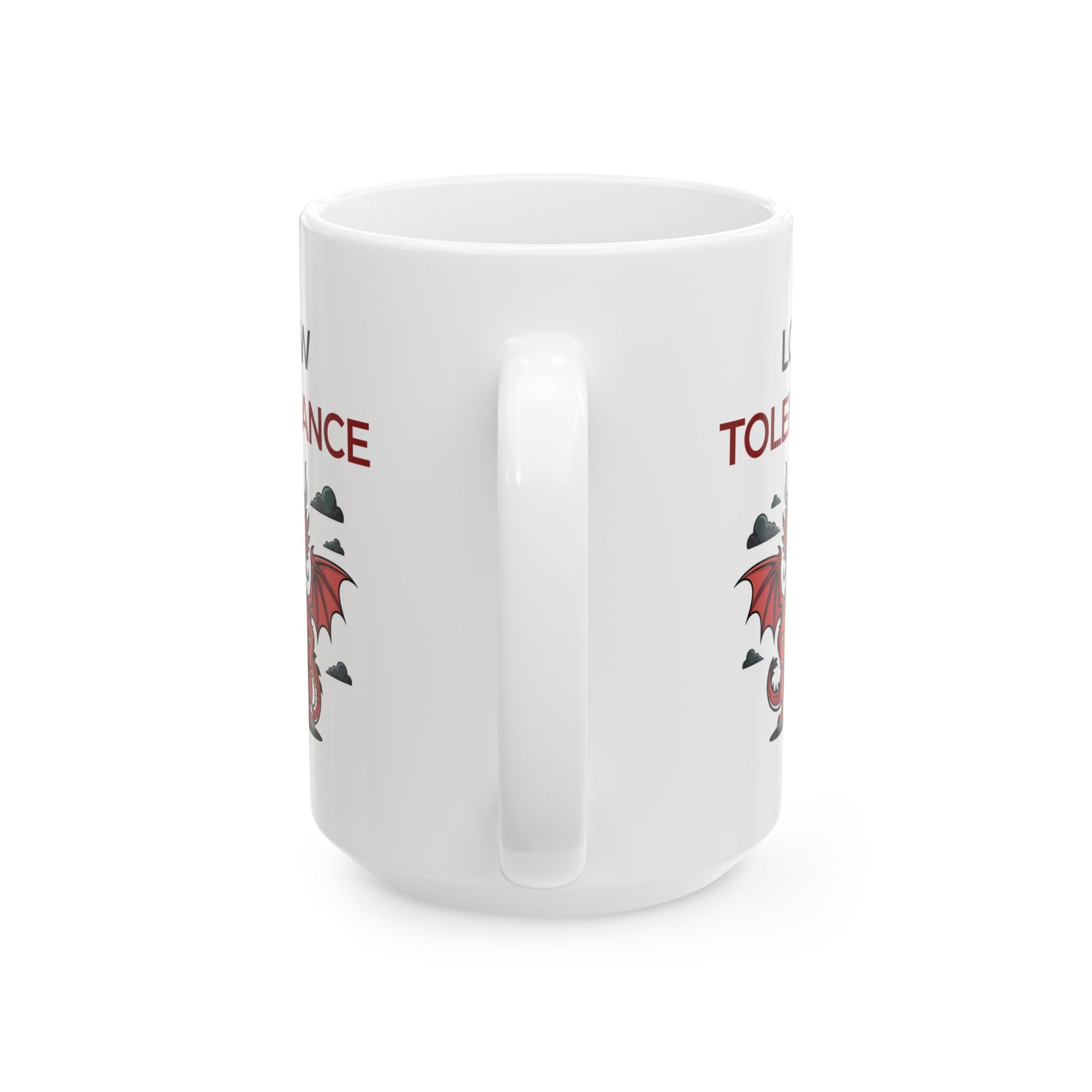 Low Tolerance Dragon Mug by Lair Gadgets – 15oz Funny Attitude Coffee Cup, Dishwasher & Microwave Safe Ceramic Mug