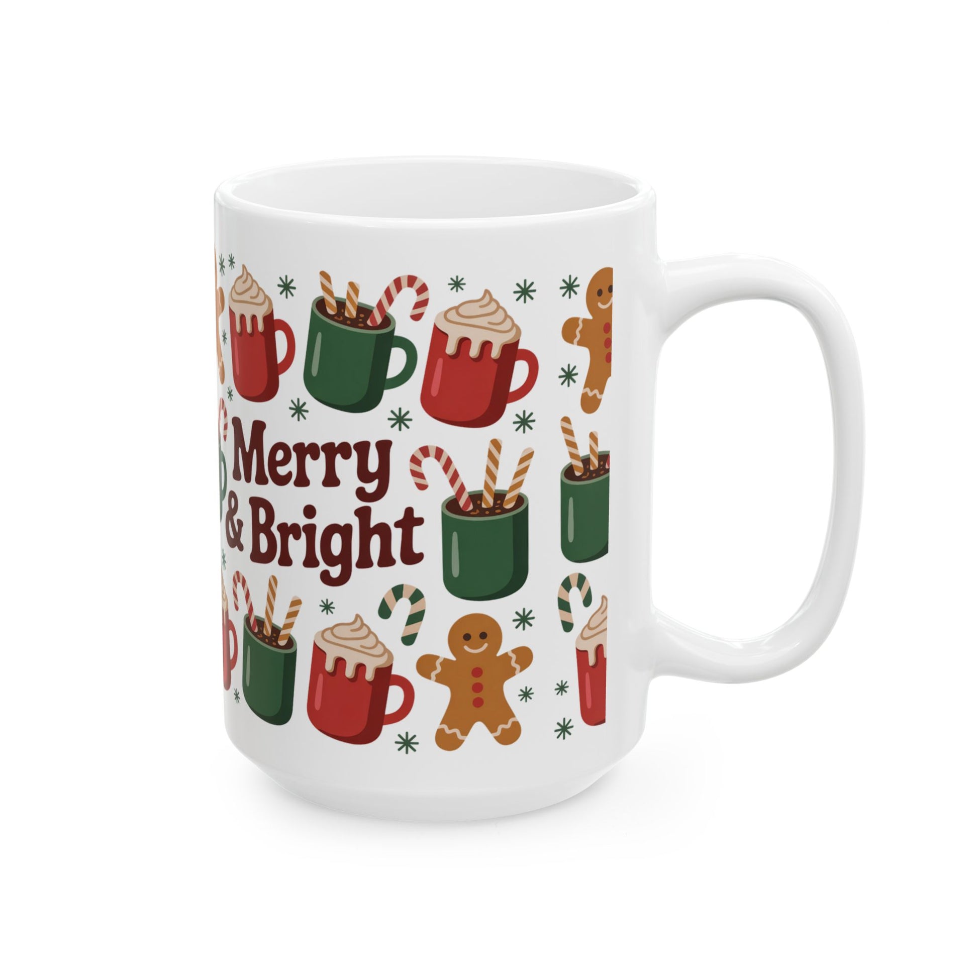 Merry & Bright Holiday Ceramic Mug, Gift for Coffee Lovers, Christmas Mug, Festive Tea Cup, Holiday Gatherings