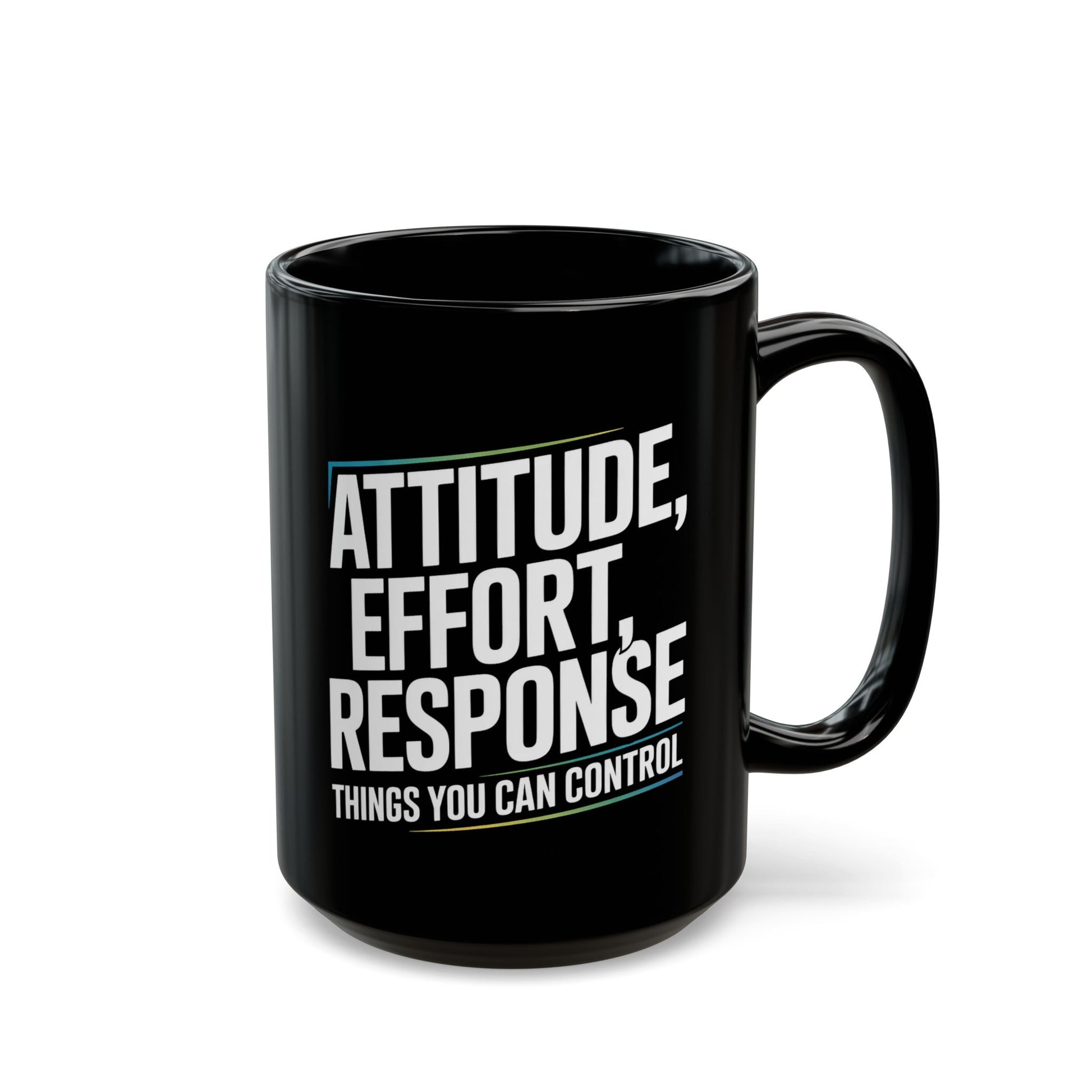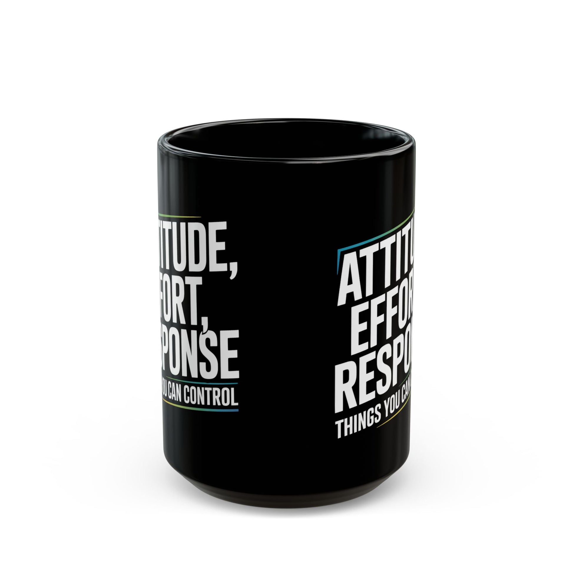 This black mug is more than just a drinkware; it's a daily reminder of the power of attitude, effort, and response. Perfect for coffee lovers and tea enthusiasts, this mug will elevate your morning routine with its sleek design and vibrant print. Whether you're starting a busy workday or enjoying a cozy evening, this mug will bring motivation and positivity to your space. Ideal for gifts on occasions like birthdays, holidays, or as a thoughtful surprise for a friend. This mug is a must-have for anyone looking to inspire themselves and others, making it suitable for students, professionals, or anyone who appreciates a daily dose of encouragement.