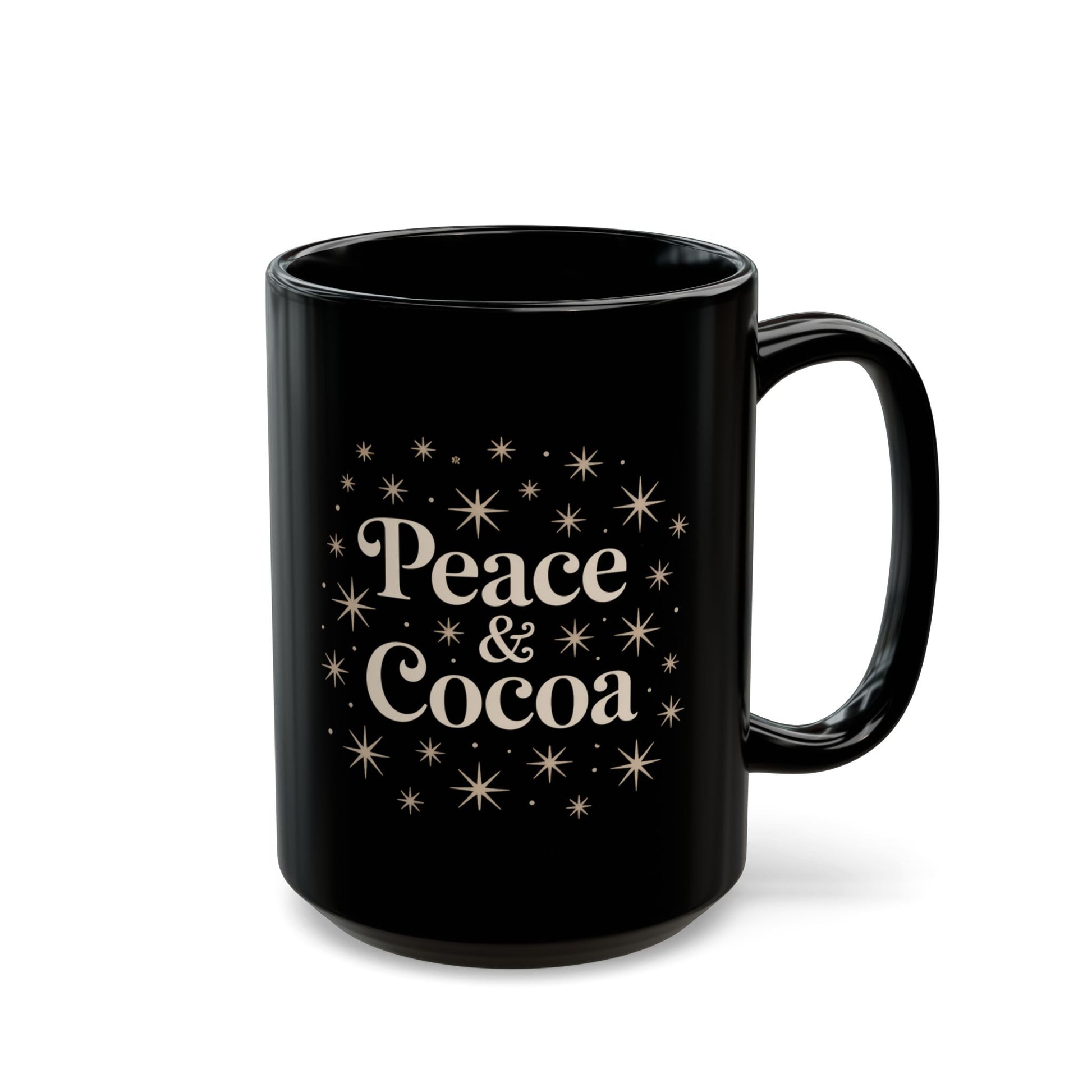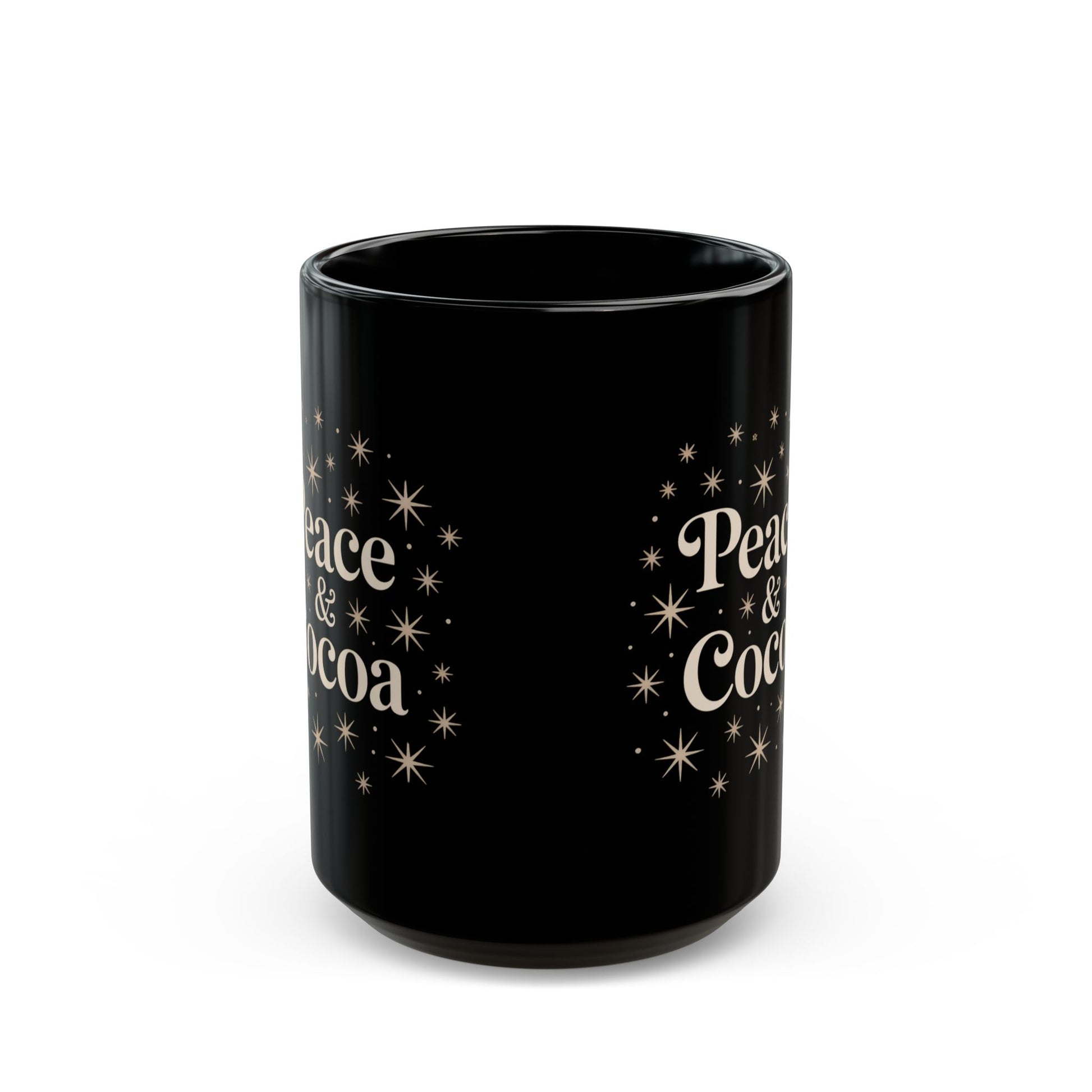 Peace & Cocoa Black Mug | Cozy Drinkware Gift for Hot Chocolate Lovers, Holiday Mugs, Warm Beverage Cups, Perfect for Winter Celebrations
