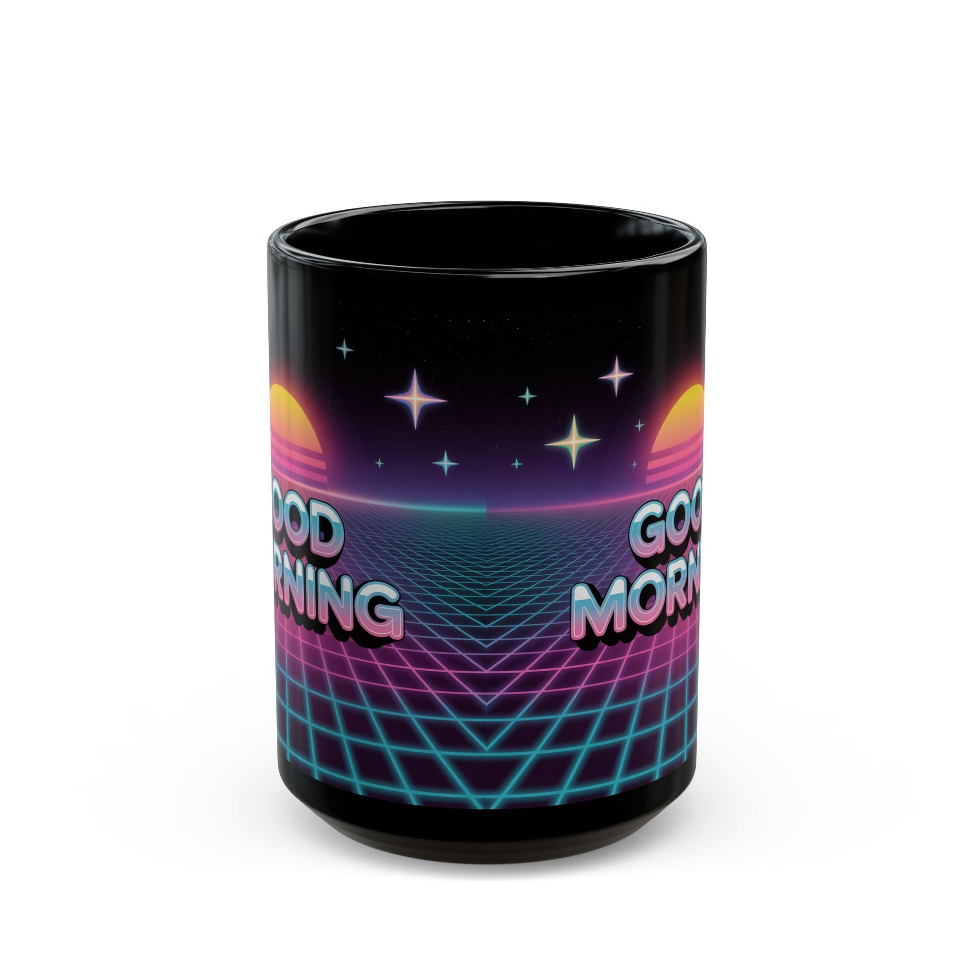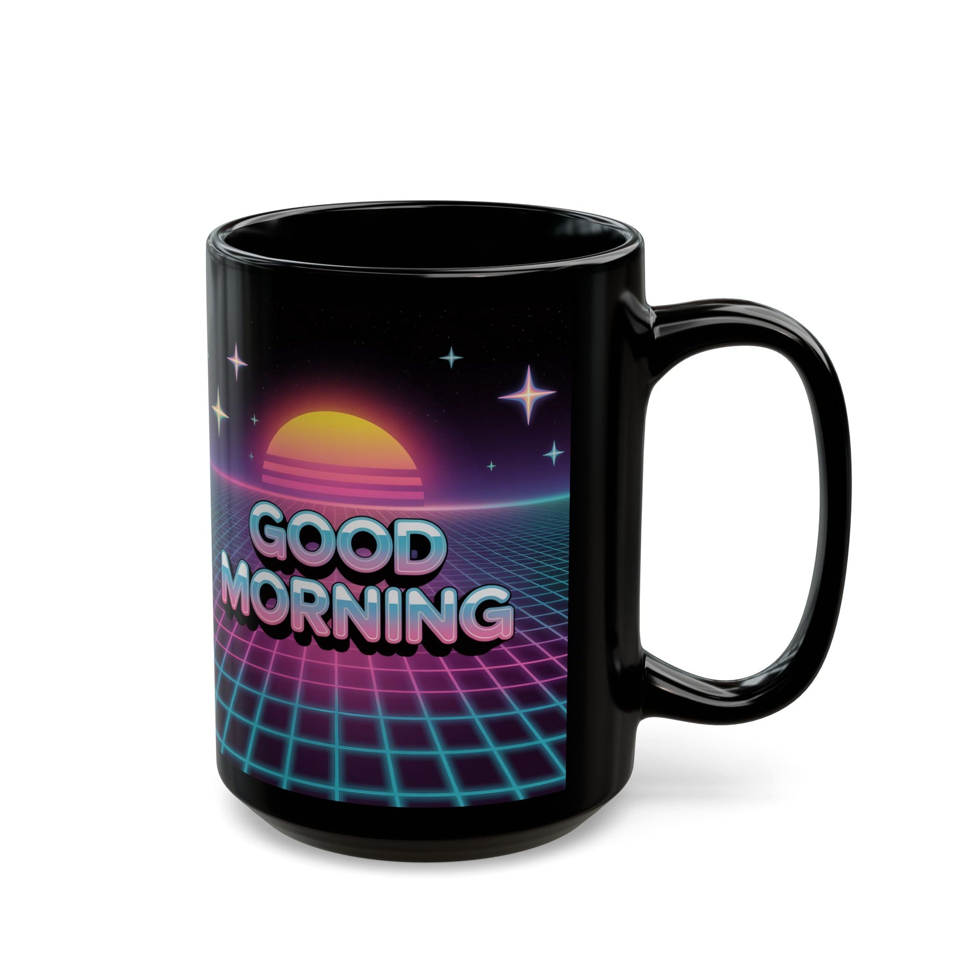 Retro Good Morning Mug - Black Coffee Cup, Gift for Coffee Lovers, 80s Aesthetic, Daily Motivation, Office Decor