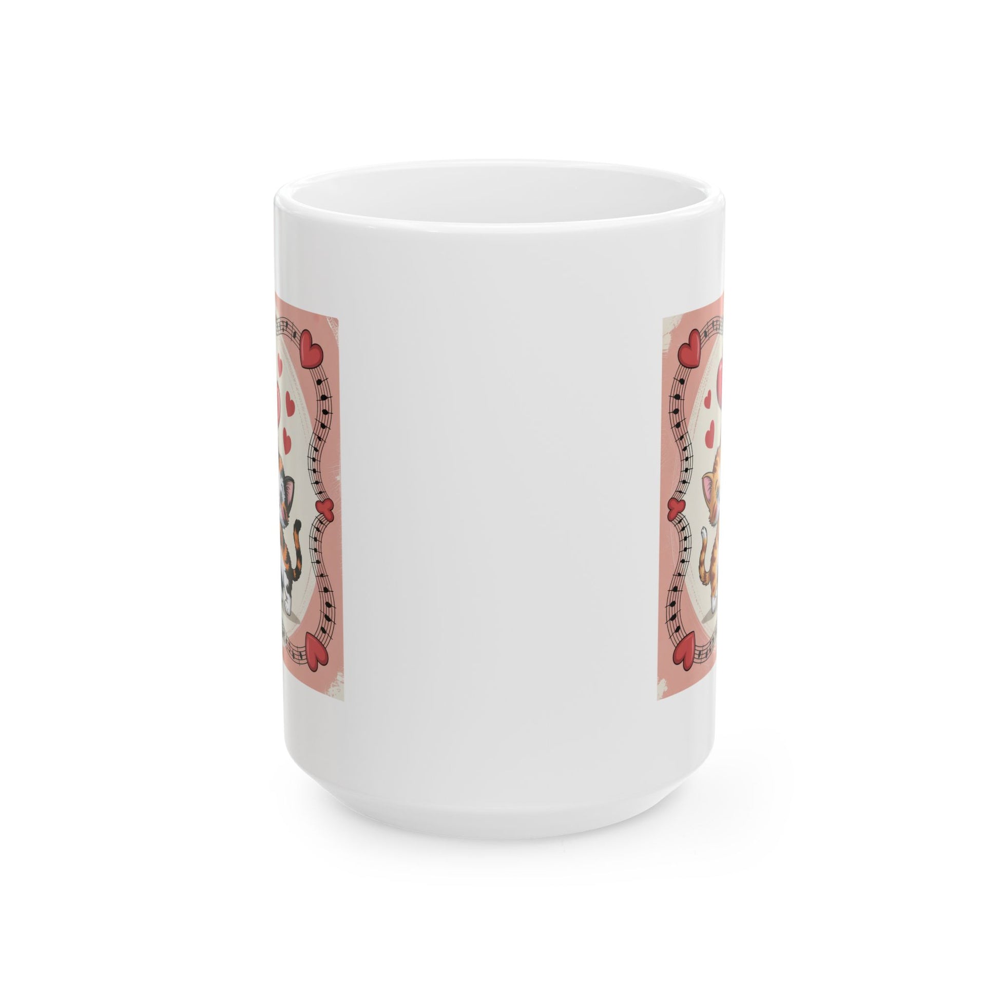 This glossy ceramic mug brings a warm, playful touch to quiet mornings and cozy afternoons. The artwork features two sweet kittens framed by soft pinks and floating hearts, giving the mug a gentle, affectionate vibe that invites slow sips and small smiles. Lightweight enough for daily use yet substantial in feel, it carries bright, crisp colors that stay vivid through rinses and microwave moments. Slide it into your routine when you want a little comfort with your coffee, tea, or hot cocoa — a small ritual that brightens ordinary days and pairs naturally with card-making, movie nights, or relaxed weekend breakfasts.